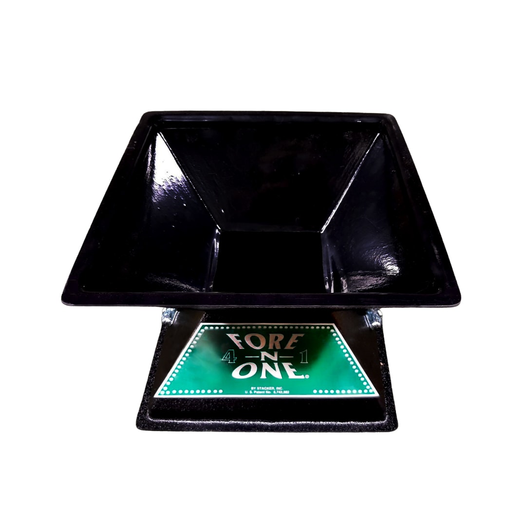 Makes 91 ball and 55 ball pyramids. This product is made from durable ABS plastic. It makes stacking golf balls into a pyramid easy and fast. The golf ball pyramid presentation will wow your customers and make your range look fantastic. This is the Small Fore-n-one device only, a tray is required to create a pyramid.